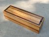 Sähe sie nicht so modern aus, könnte Vierhundertdrei uns an Omas Griffelkasten erinnern. Dank dem Schiebedeckel lässt sie sich auch gut transportieren. Auf Dauer ergäben sich dann natürlich Gebrauchsspuren – wie auf Omas Griffelkasten.